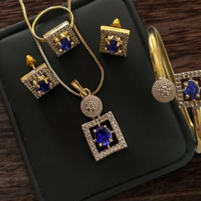 This A.D Indian full zircon gold plated combo set features a beautifully crafted kara (bangle) paired with a matching ring, designed to give a rich and traditional yet modern look. Fully studded with sparkling zircon stones, the set offers high-end shine and premium finishing. The ring comes in an adjustable size, making it comfortable and easy to wear. Made with best high quality materials, this combo is perfect for weddings, parties, festive events, and special occasions. Available in 9 stunning colors to match every outfit and style.